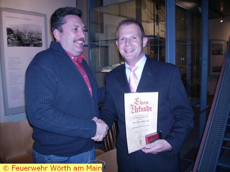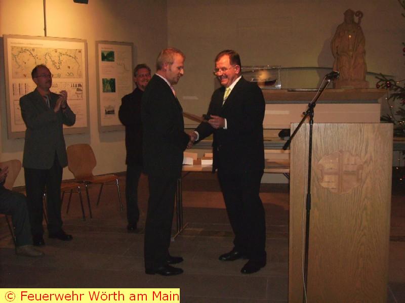 Freiwilligen Feuerwehr Wörth die Ehrenplakette der Stadt Wörth.
